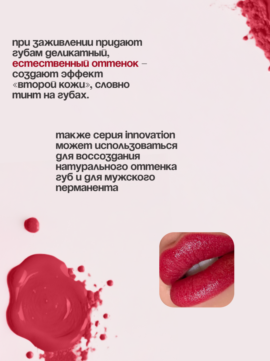 Для мастеров пигменты INNOVATION подарят небывалую легкость при имплантировании в кожу, и при этом невероятно яркий, стойкий остаток. У данных пигментов без спирта за счет новой, уникальной формулы – удалось получить «блеск» эффект, где нет жирного, плоского пикселя.