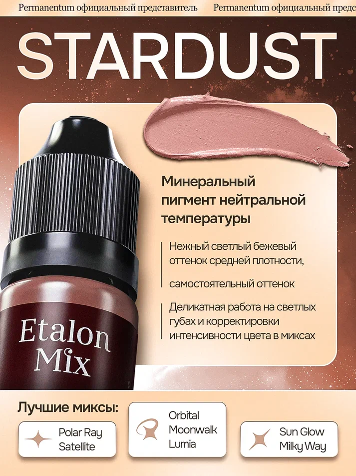 Минеральный пигмент нейтральной температуры. Нежный светлый бежевый оттенок средней плотности, который мягко освежает губы и создаёт естественный эффект натурального цвета. Может использоваться как самостоятельный оттенок на светлых губах или как компонент микса для смягчения и осветления более насыщенных тонов.