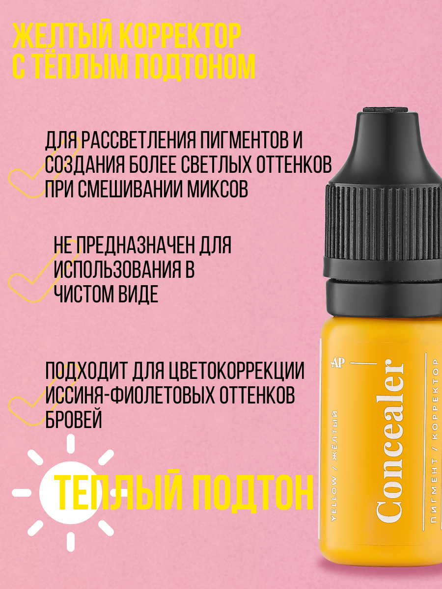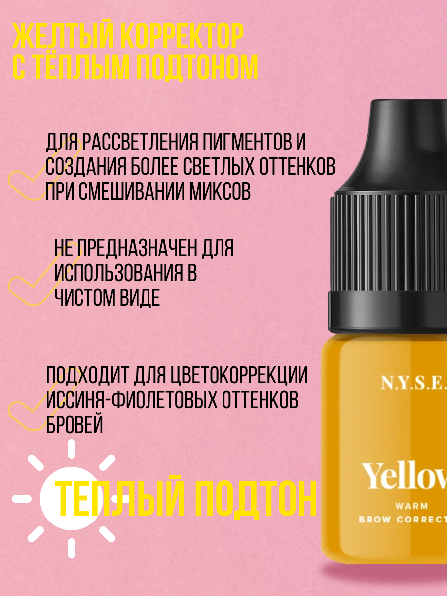 Гибридный пигмент. Жёлтый корректор для создания более светлых оттенков при смешивании. Не предназначен для использования в чистом виде.