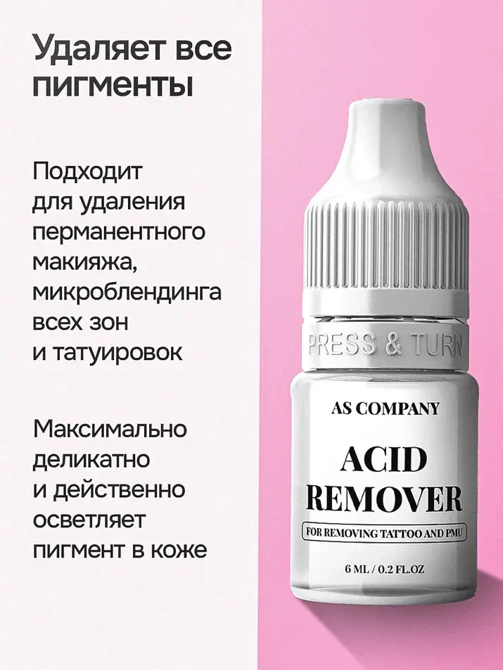 Ремувер кислотный для удаления татуажа Шаховой AS-Company 15 мл. Ремувер для удаления перманентапрошел много тестов и мы провели уже более 30-ти процедур с использованием данного ремувера и совершенно точно можем сказать что он: отлично справляется с удалением пигмента на любых типах кожи. Благодаря кислотам в составе способствует регенерации кожного покрова. Кислотный ремувер АС Шаховой разработан для максимально деликатного и действенного осветления пигмента в коже.